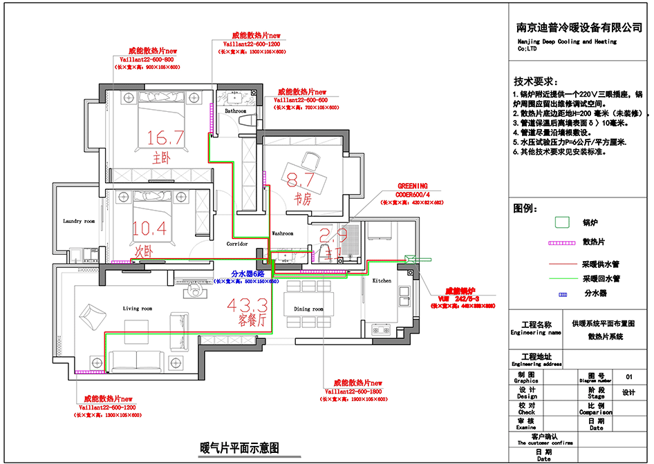 優點:由于采用了分水器的形式,每一組散熱片單獨管道來回,地面以下沒有任何接頭,安全系數非常高。只要在裝潢過程中不破壞,地下不會有漏水的可能。使用壽命30-50年。