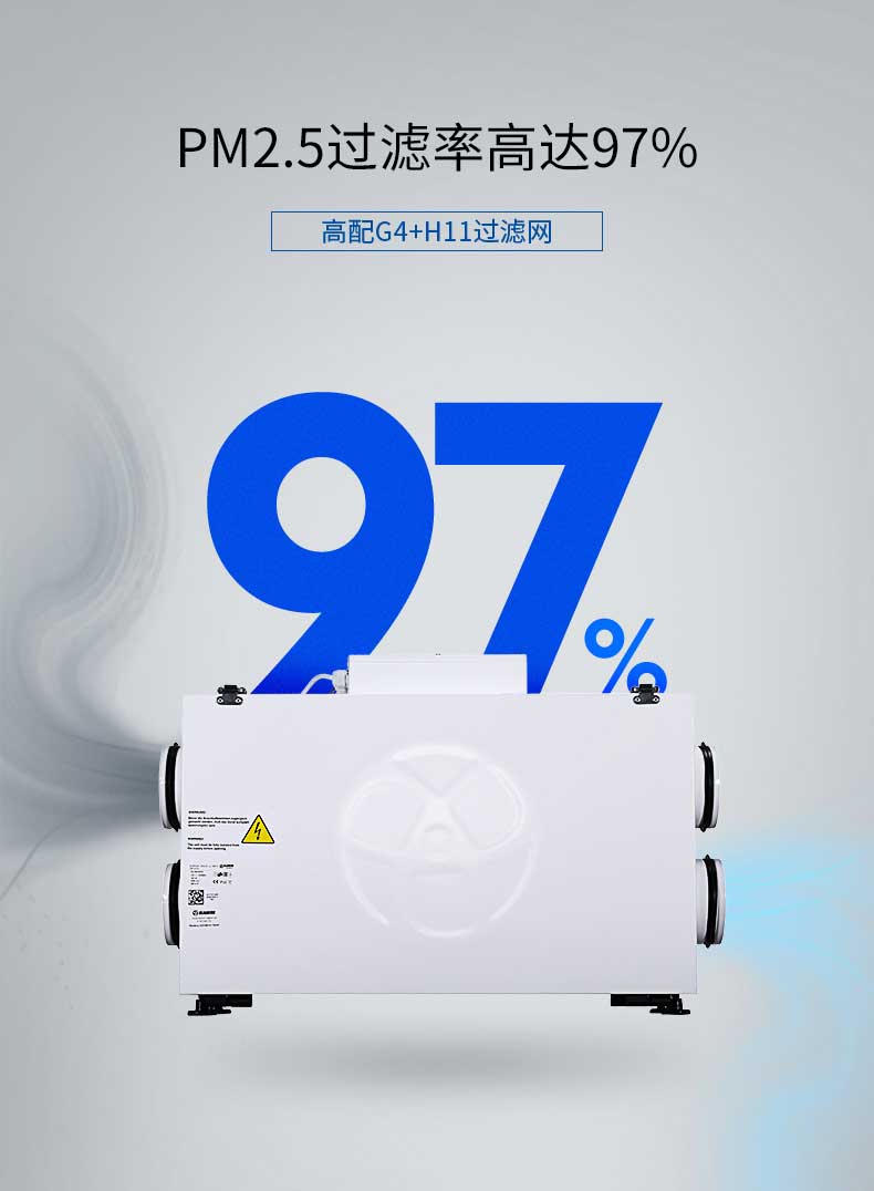 ● 高配G4+H11雙過濾網(wǎng),PM2.5過濾率高達(dá)97%!